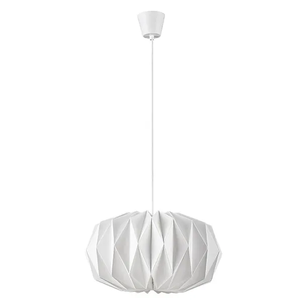 Zaprojektowana do zastosowania w salonie oprawa wisząca Ormini jest reprezentantem stylu skandynawskiego. Oprawy z kloszami wykonanymi z papieru nie przypadkowo są ulubionym wyborem wielu osób, przynoszą figlarność i naturalność do jednego z najbardziej ruchliwych pomieszczeń domu. Wykonana z metalu oprawa w kolorze matowej czerni może być przymocowana do sufitu za pomocą małej, cylindrycznej podstawy zwężającej się ku dołowi. Okrągły klosz z matowo białego papieru tworzy zaokrąglony, kwiatowy kształ wokół źródła światła. Do oprawy Ormini można zastosować źródło światła z trzonkiem E27 o mocy max. 25 W. Przez biały papierowy klosz doskonale widać barwę emitowanego przez żarówkę światła, które może być ciepłobiałe lub naturalne białe. Wymiary oprawy wiszącej wynoszą: wysokość 235 mm, średnica 430 mm, zwis 1400 mm, średnica otworu montażowego 90 mm. Produkt ten jest dostarczany bez źródła światła.